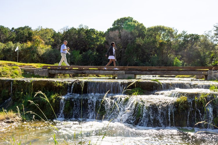 This award-winning course offers numerous scenic holes lined with stately Red Oaks and Sycamore trees and features spectacular views of Austin’s Hill Country and Short Springs Branch, a bubbling limestone bed creek that meanders throughout the course. The 561- yard, par-5 finishing hole is tremendous and by all accounts rivaling Barton Creek’s #18 hole on the Foothills course.